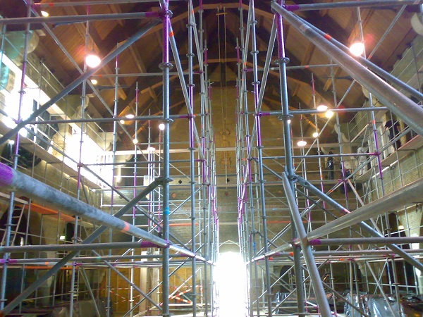 Steigers in kerk Amsterdam 2